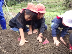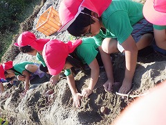 はたけばたけのお芋も収穫期を迎え2~5歳児のお友達が掘りました。